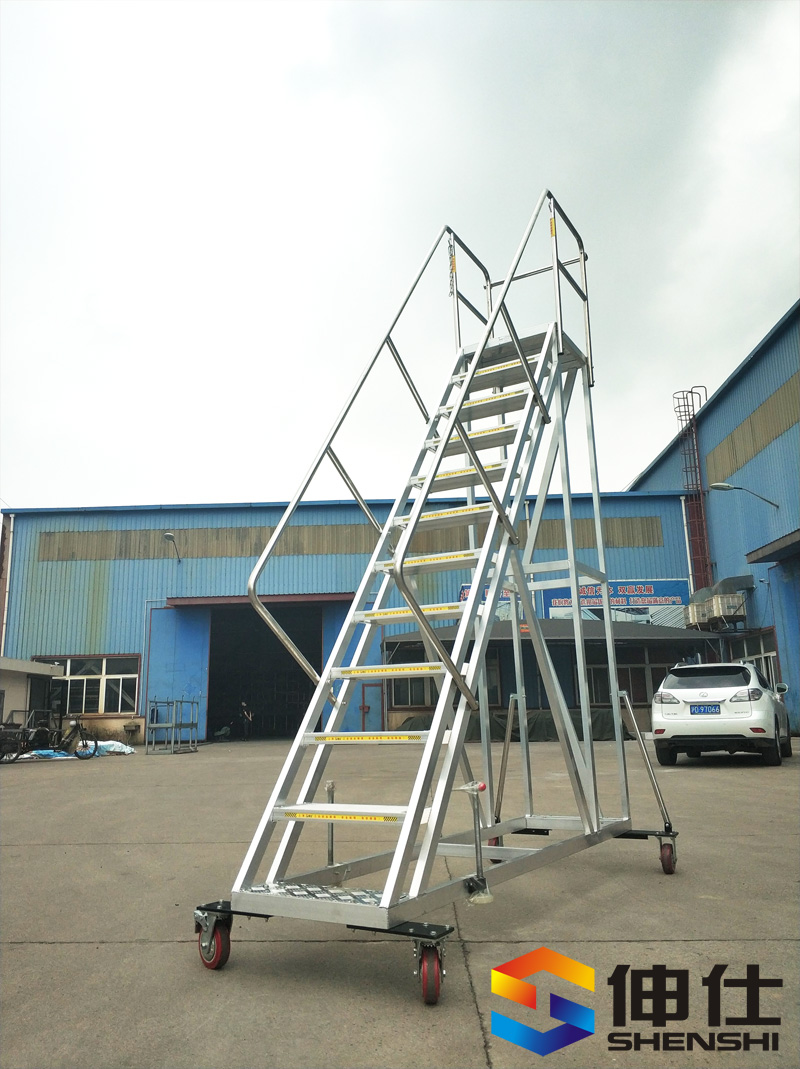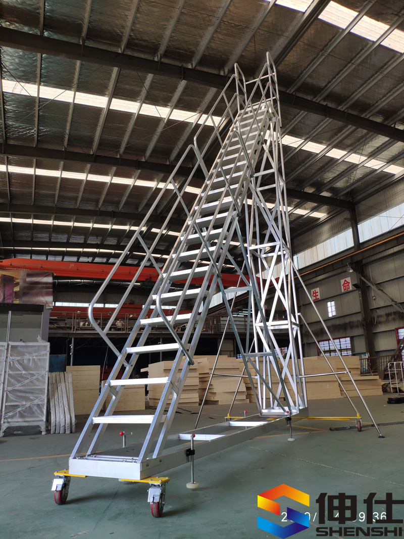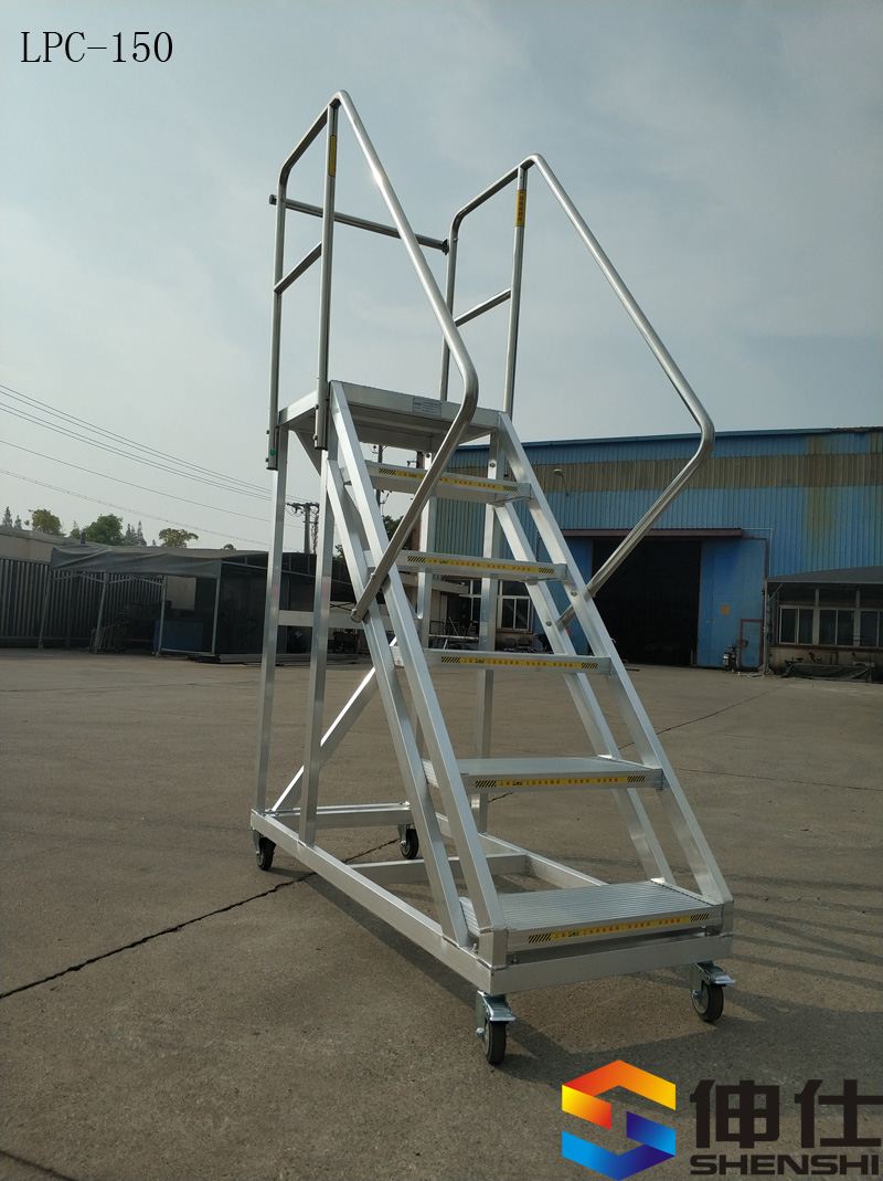 L指前輪到后輪總長度,W1指登高梯主體寬度,W2指腳輪外裝最大寬度,H1指平臺高度,H2指護欄高度