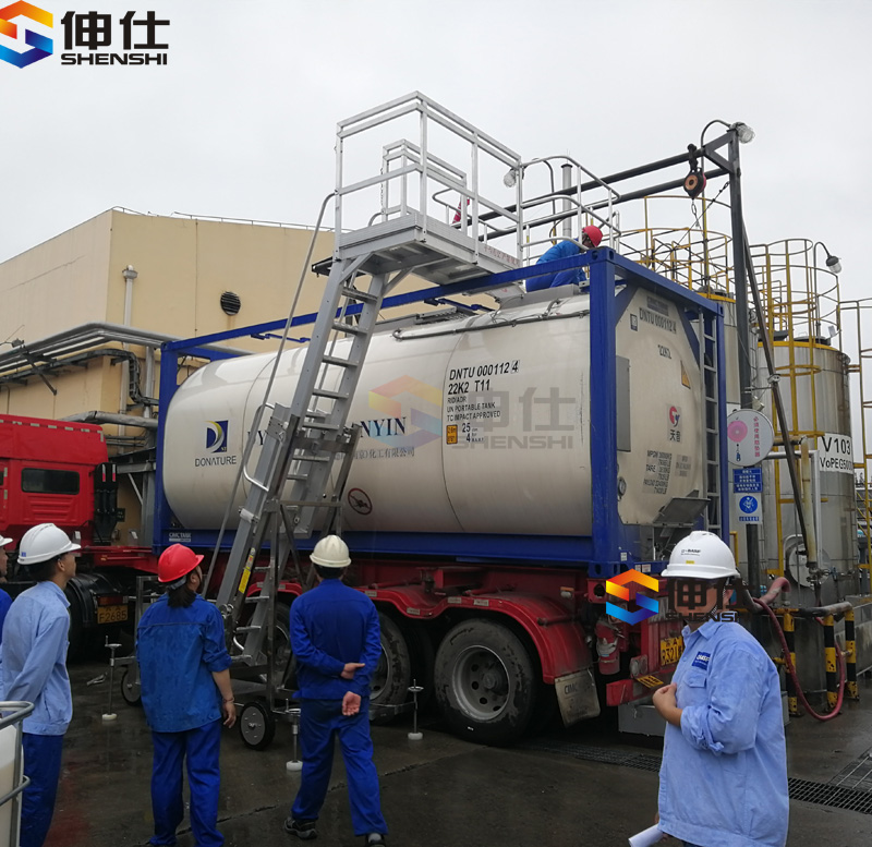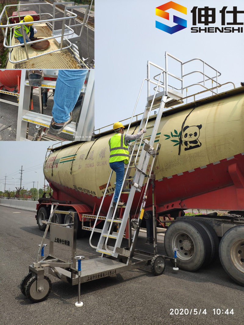 罐車取樣梯 底部配有4根調節支撐腿,調節固定地面整體穩定性更優。