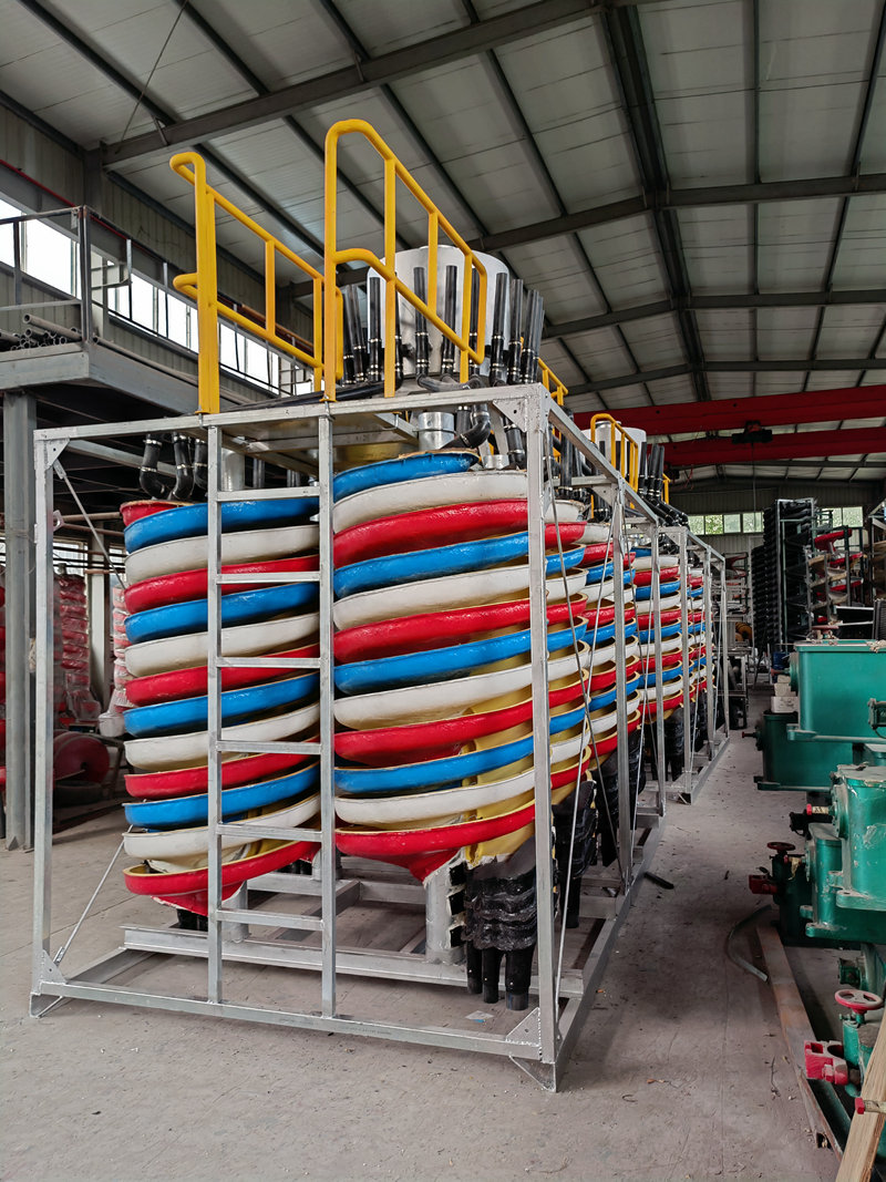 公司有玻璃鋼化工技術(shù)及制造工藝的優(yōu)勢,早在1988年就研制開發(fā)了國內(nèi)大直徑及新斷面特性的DL—2000型兩米直徑玻璃鋼螺旋溜槽。該設(shè)備一臺處理能力相當于40臺搖床,選別指標優(yōu)良。1989年通過部級技術(shù)鑒定并獲獎,填補國內(nèi)選礦設(shè)備一項空白。20多年來,公司先后開發(fā)了一系列玻璃鋼選礦新設(shè)備,使設(shè)備性能、結(jié)構(gòu)參數(shù)更臻完善。就玻璃鋼螺旋溜槽φ400—φ2000各類系列產(chǎn)品和各種床條結(jié)構(gòu)的玻璃鋼搖床而言,公司擁有國內(nèi)完備的直徑與型號系列;完善的結(jié)構(gòu)參數(shù);過硬的制作質(zhì)量;新穎的改進型式;可靠的設(shè)備選型方法。