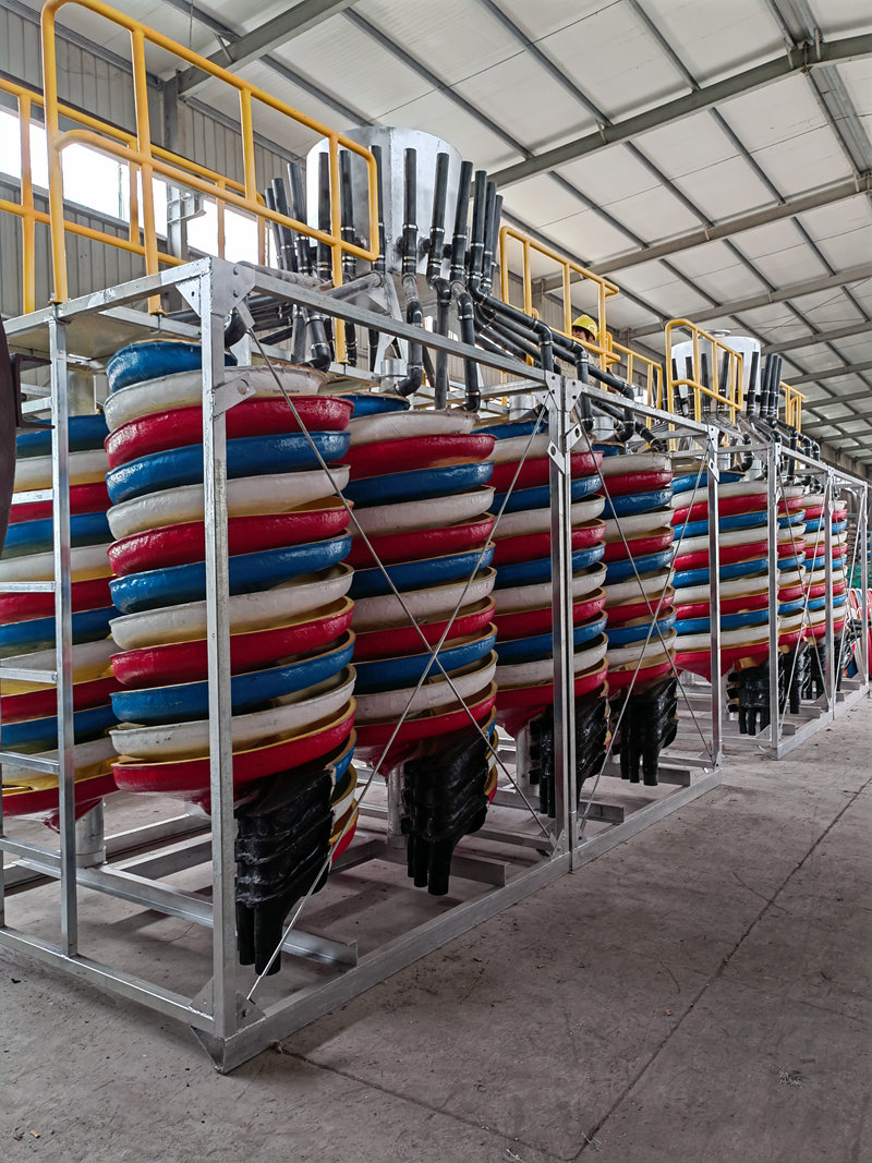 公司有玻璃鋼化工技術(shù)及制造工藝的優(yōu)勢,早在1988年就研制開發(fā)了國內(nèi)大直徑及新斷面特性的DL—2000型兩米直徑玻璃鋼螺旋溜槽。該設(shè)備一臺(tái)處理能力相當(dāng)于40臺(tái)搖床,選別指標(biāo)優(yōu)良。1989年通過部級(jí)技術(shù)鑒定并獲獎(jiǎng),填補(bǔ)國內(nèi)選礦設(shè)備一項(xiàng)空白。20多年來,公司先后開發(fā)了一系列玻璃鋼選礦新設(shè)備,使設(shè)備性能、結(jié)構(gòu)參數(shù)更臻完善。就玻璃鋼螺旋溜槽φ400—φ2000各類系列產(chǎn)品和各種床條結(jié)構(gòu)的玻璃鋼搖床而言,公司擁有國內(nèi)完備的直徑與型號(hào)系列;完善的結(jié)構(gòu)參數(shù);過硬的制作質(zhì)量;新穎的改進(jìn)型式;可靠的設(shè)備選型方法。