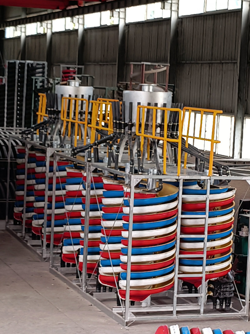 技術(shù)研革 我公司生產(chǎn)6-S搖床、螺旋溜槽已30載,型號從φ400—φ2000,選別曲線不斷優(yōu)化,從立方拋物線、橢圓曲線到復(fù)合曲線,使設(shè)備的選別性能更加優(yōu)化,滿足不同礦物選別的需求。世界上大規(guī)格的螺旋溜槽(直徑2000mm),就是我公司生產(chǎn)并通過部級技術(shù)鑒定而獲獎的。現(xiàn)在我公司可生產(chǎn)318種不同規(guī)格型號的螺旋溜槽,可按用戶的“腳”制造適合的“鞋”,保證滿足用戶要求。我公司的高技術(shù)人員還可為設(shè)計方案提供咨詢意見,以便用戶獲得好的經(jīng)濟指標。
